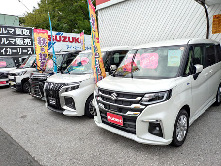総合カーディラーのラビット川口店では、国産オールメーカー新車の販売を行っています。ダイハツ、トヨタ、スズキ、ホンダ、日産、スバル、マツダの新車お任せください。全車種、全グレード、商用車から福祉車両まで対応しています。